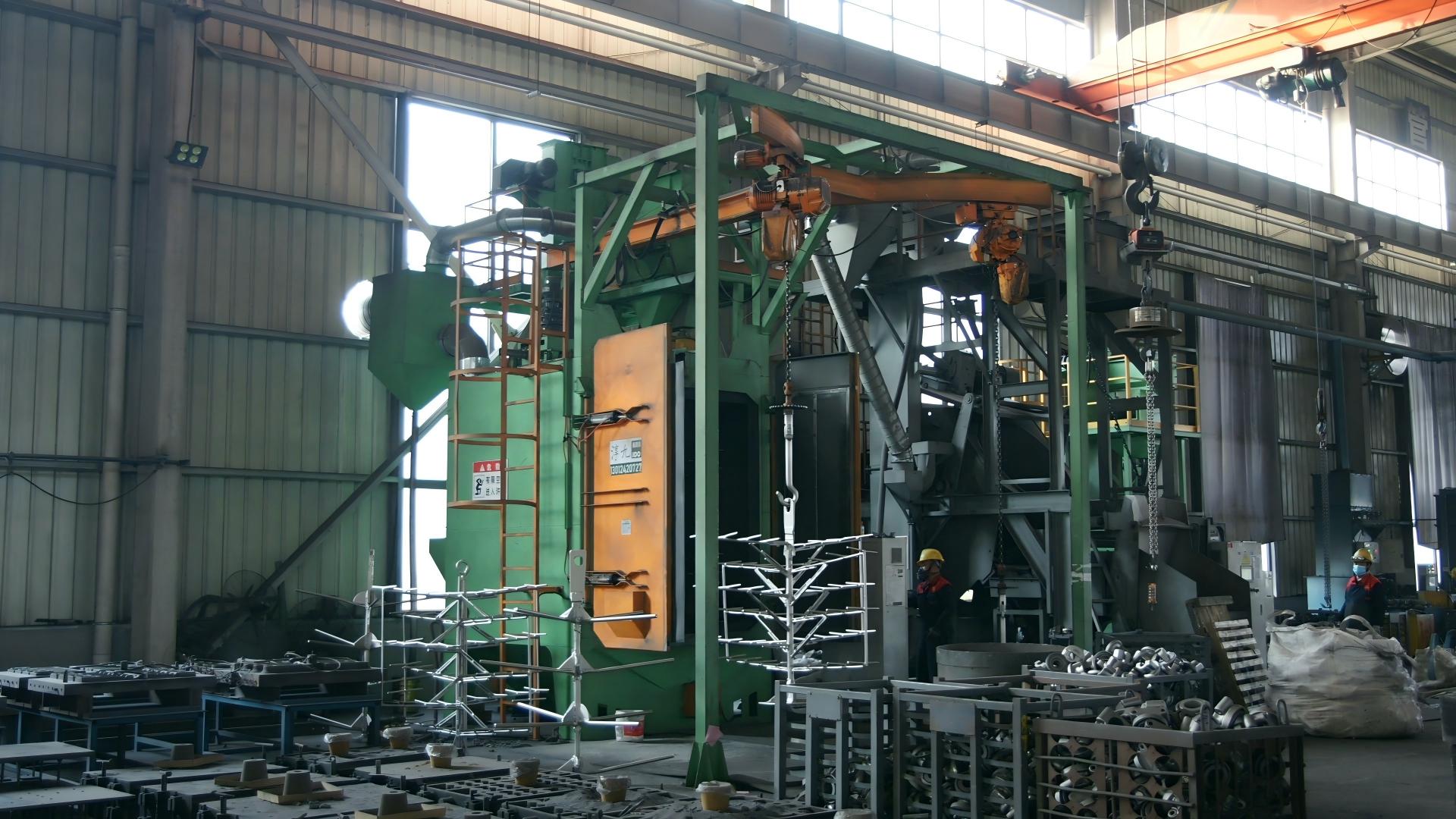 Two 5-T medium-frequency electric furnaces, with an automatic sand casting line, can ensure the simultaneous operation of 121 sand boxes at full load. The line can accommodate up to 36 tons of products, enabling an annual ductile iron production capacity of 15,000 tons.